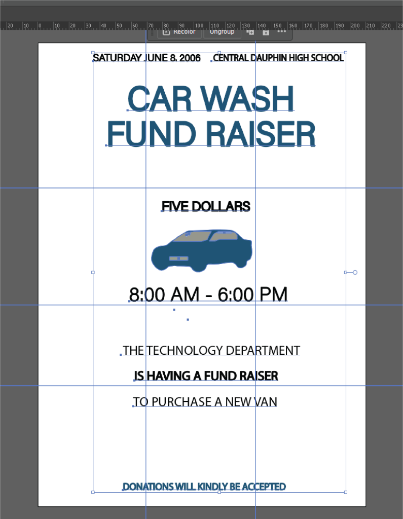 The formality was missing from the original poster due to the chunky font, and the car picture behind the text,, and it is important for the composition of a poster which is for a fundraising/charity event to retain formality, as it involves money, and is addressing the public, especially since the format itself is quite informal (poster), the composition needed to have a level of professionalism.