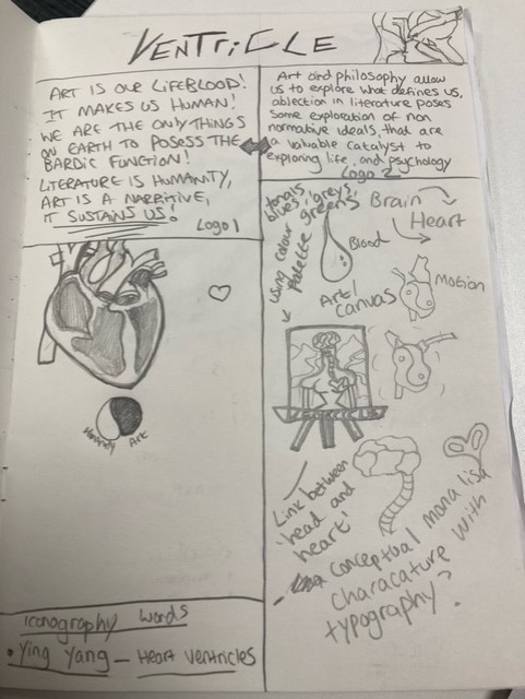 The concept behind the logo was born from the word “Ventricle”, which are components of the heart which pump blood around the body; I wanted it to be a metaphor for the way in which art plays out in society, and its relationship to us.