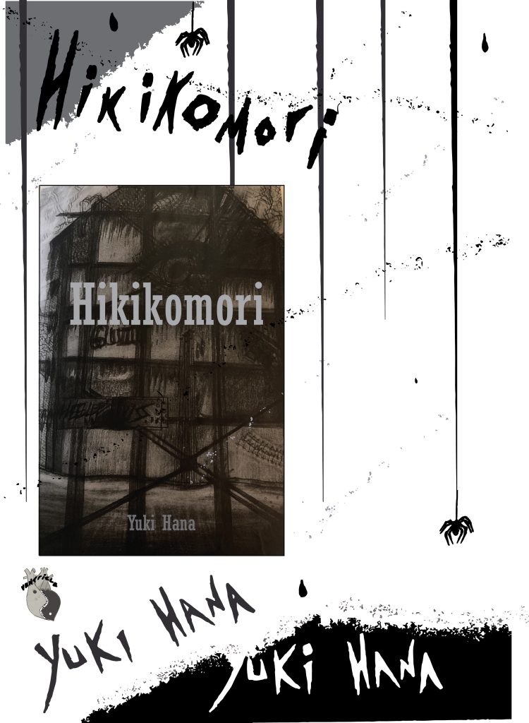The second poster I created is for the Hikikomori book cover, and I wanted to create a feeling of being trapped behind bars, using lines coming down from the top of the poster. I also wanted to give the viewer the feeling of being watched, or of being the spider hanging off the ceiling, watching the narrative unravel.