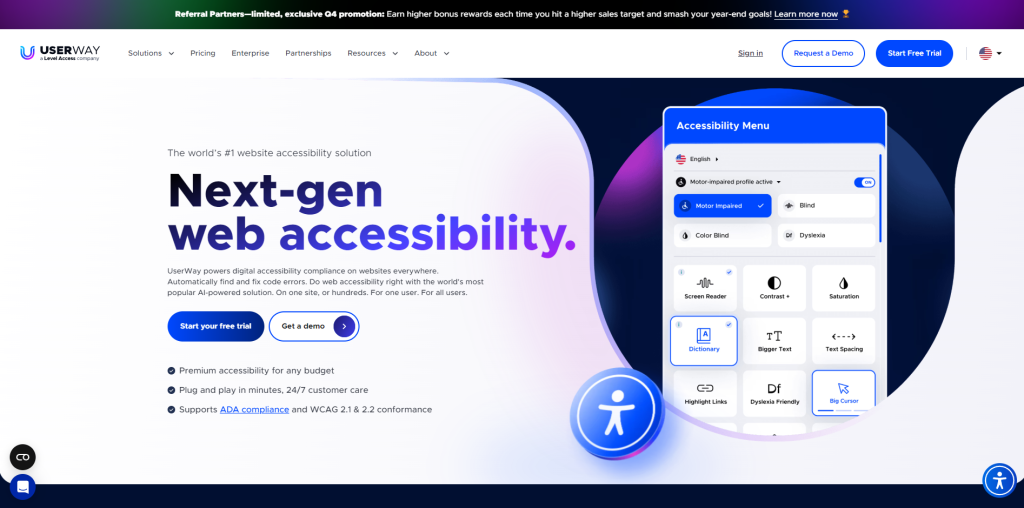 User Way Website Showing WCAG 2.1 And 2.2 Compliances