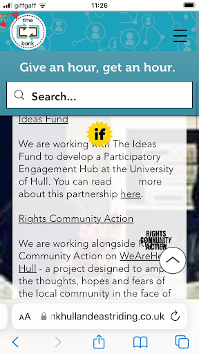 I would like to use the mobile- first approach, rather than designing for desktop, and then having a poorly adapted UI which has errors; As can be seen with the Time Bank’s website, when using it on mobile, some assets overlap text, as well as the upper tabs becoming a hamburger menu, (which isn’t the issue), it uses headings that are too long to fit in the menu properly, becoming unreadable.